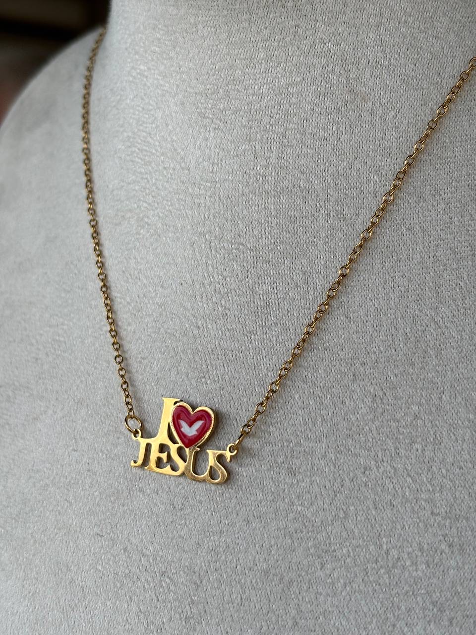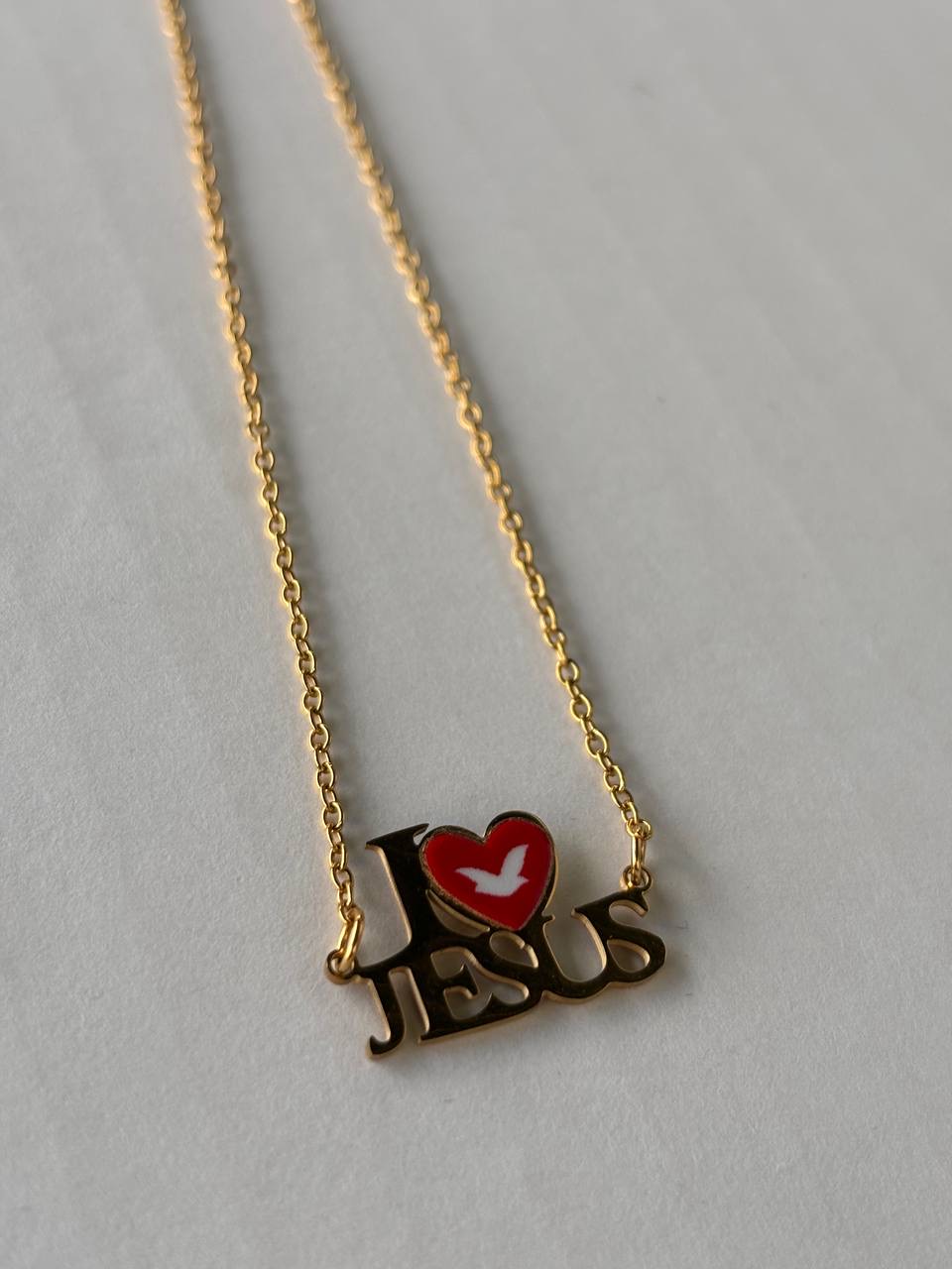 Colar de Aço Inoxidável dourado com pingente do “I <3 Jesus” .