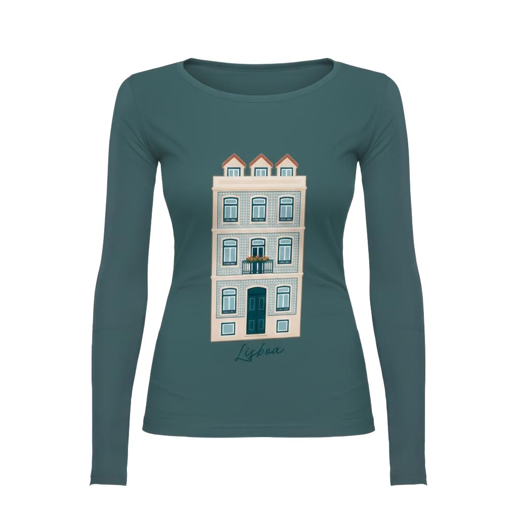 T-Shirt manga comprida com estampagem de Casa Lisboeta na cor “Storm Blue“.