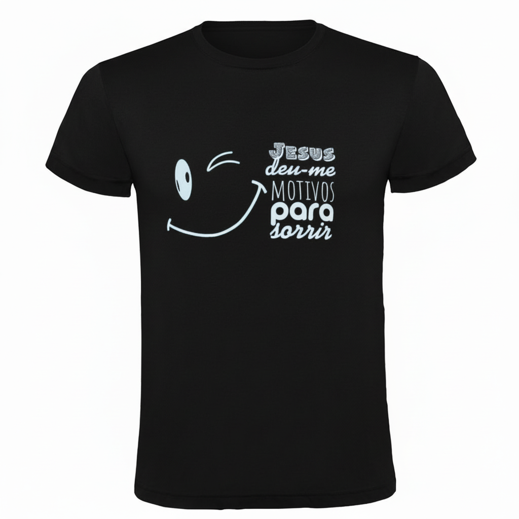 T-Shirt Jesus deu-me motivos para sorrir Preta (FJU)